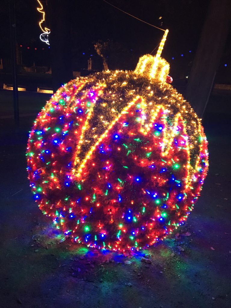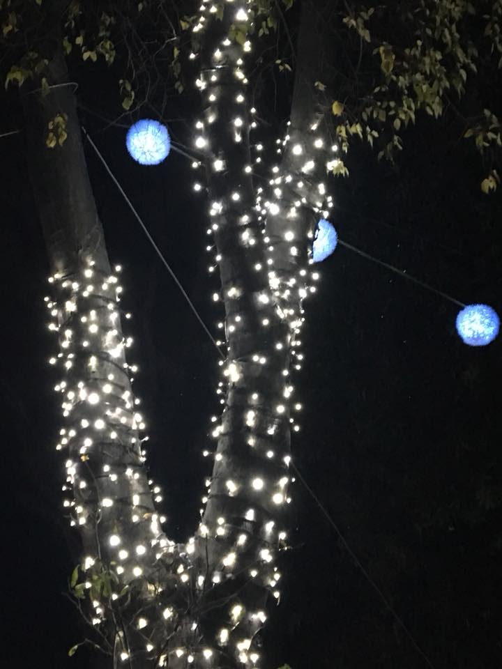 Dezember 2017: Man hängt Lichter in Bäume – man kann aber auch Lichter an Baumstämme hängen:In Split vor der Zlatna Vrata (Goldenes Tor) schmiegt sich der Vorweihnachtskranz wie ein Feenstrumpf um einen Baum… leise Deko, romantisch.